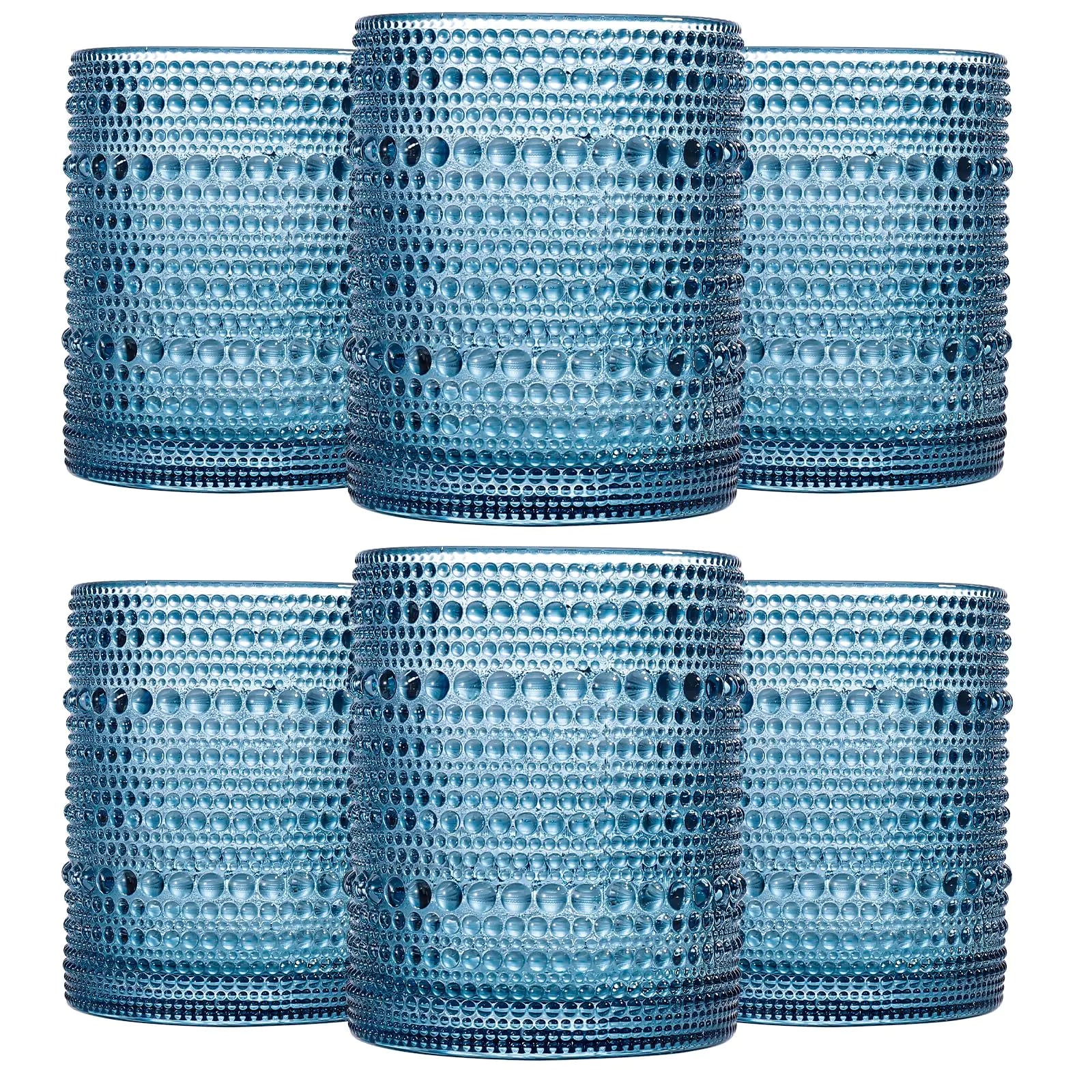 Questi raffinati bicchieri in zaffiro con chiodi combinano eleganza e resistenza, realizzati in vetro 100% senza piombo con pareti e fondo rinforzati per garantire solidità e sicurezza. Il design artigianale vintage, caratterizzato da motivi testurizzati e intagli delicati, assicura una presa confortevole e un'estetica dall'animo industriale che eleva l'esperienza di consumo. Il set comprende sei bicchieri da 3,9 pollici di altezza e 3,2 pollici di diametro, capacità di contenere 350 ml, completi di custodia protettiva in cotone perlato. Adatti a temperatura da -20 °C a 150 °C, sono perfetti per ogni tipo di bevanda, dal cocktail al caffè freddo, con il supporto garantito del marchio JOVGANK.